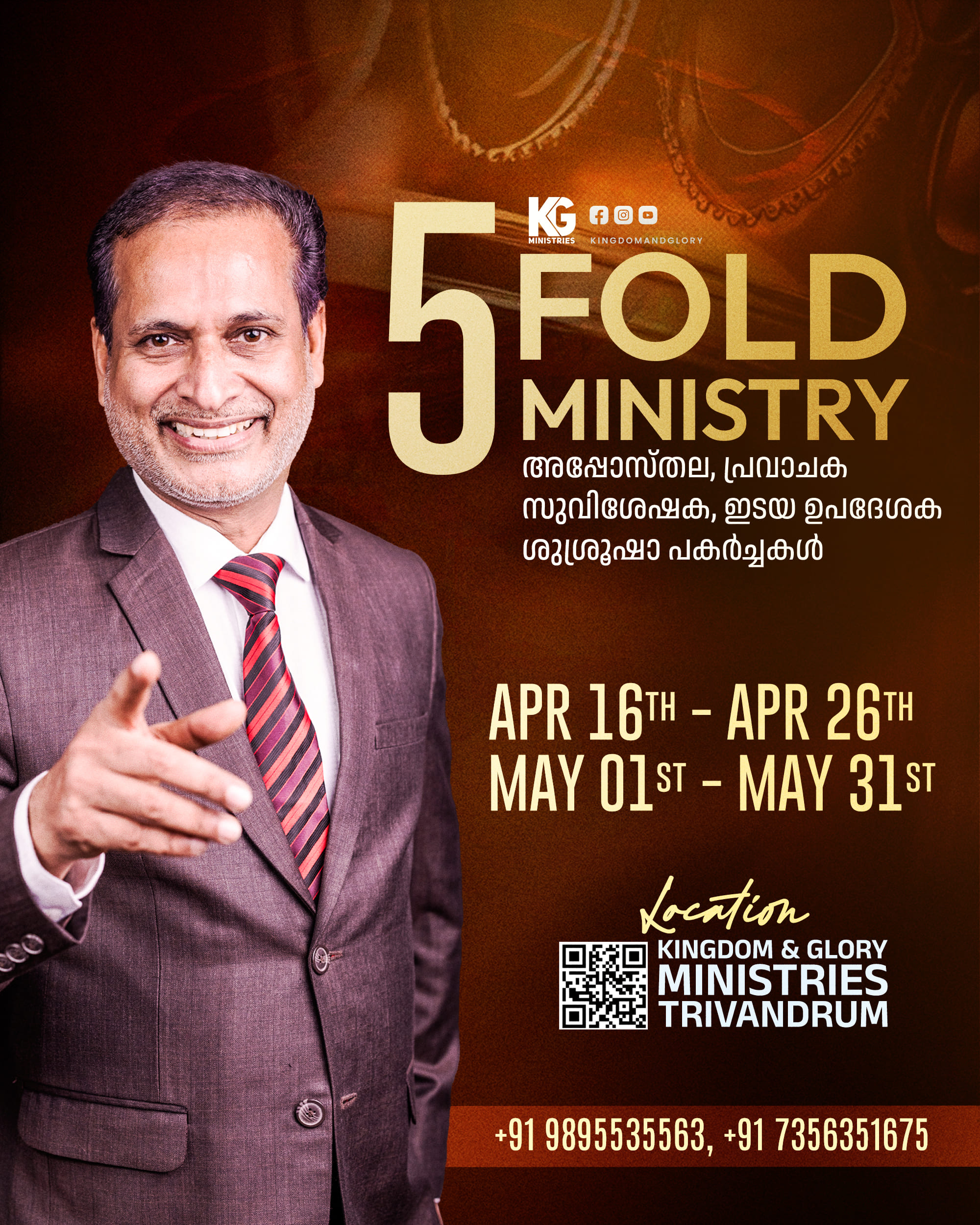 Kingdom and Glory Ministries is an apostolic and prophetic Christian ministry focused on teaching God’s Kingdom, His Glory, and eternal inheritance through Scripture. We are located at the Kingdom and Glory Worship Center, Nalanchira, Thiruvananthapuram (Trivandrum), Kerala, India.